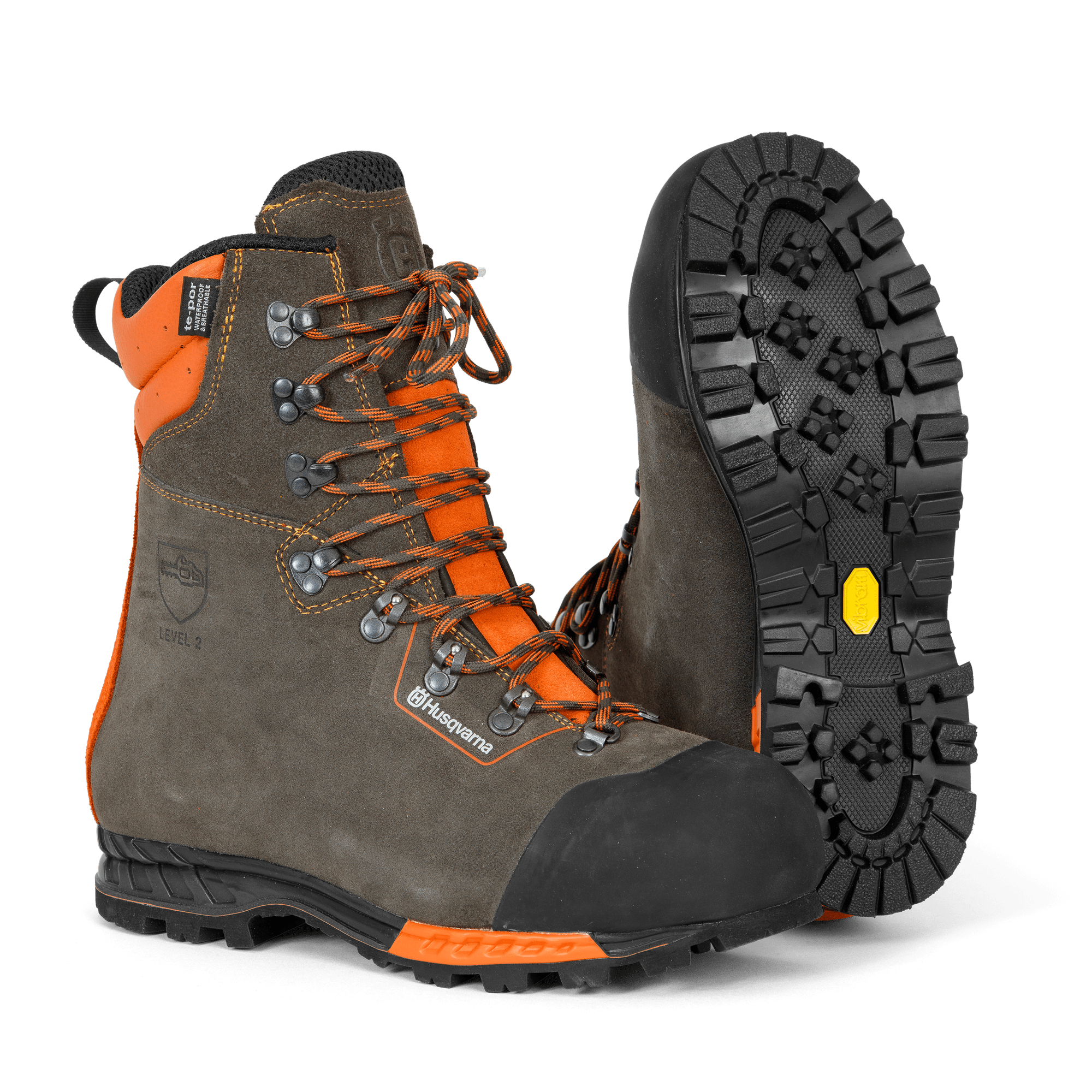 Vattenavstötande, lätta läderkängor med god stabilitet som passar för tuff användning. Förstärkta fram och bak för ökat stöd och vadderad plös och överdel för komfort. Slitstarkt Perwanger® läder och TE-POR-membran håller fötterna torra medan Vibram-sulan ger bra grepp. Utrustade med överlappande tåskydd för ökad säkerhet. Uppfyller SS-EN 381 klass 2 (24 m/s). Storlek 38–47.